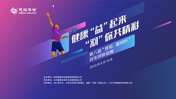 為慶祝第六個中國醫師節,積極引導全民增強健康意識,提升健康素養,助力全民健康事業蓬勃發展,8月19日,慈銘集團組織開展了以“健康‘益’起來,‘羽’你共精彩”為主題的第八屆“慈銘?董炯杯”羽毛球聯誼賽。慈銘集團聯席總...